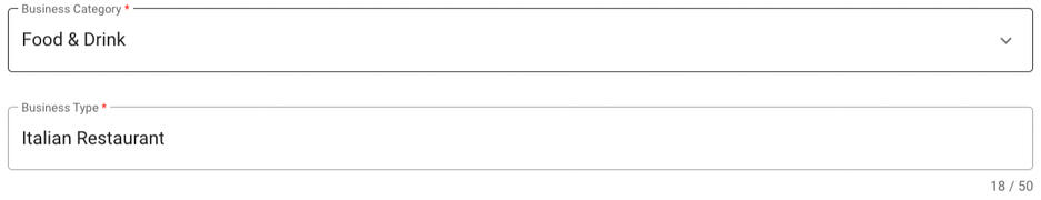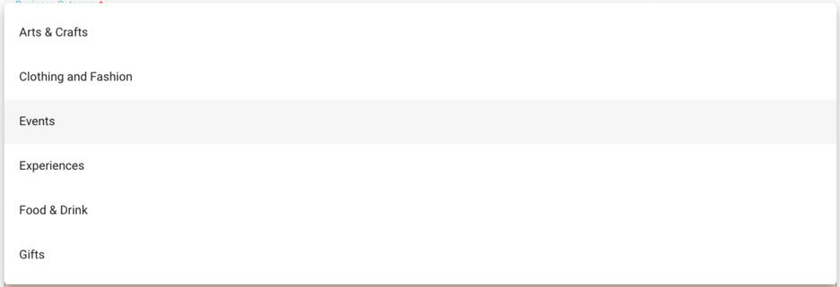 2. Fill out Business Category Select from the drop down list, the closest category to what your business is.
