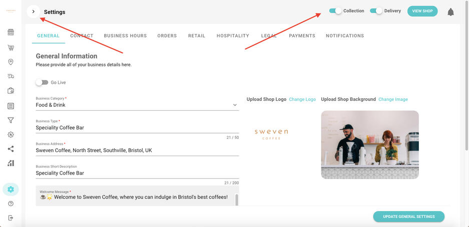 Go to Settings > General - This is your ‘About Us’ section where it will be displayed in your shop front. Update this as much as you can.