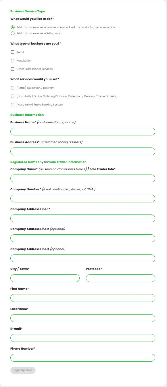 What services would you use? As retail and hospitality, you have the choice to use collection or delivery services. Also, as hospitality you can opt to use our table booking system which will be released soon.